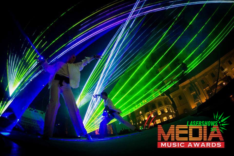 Am fost invitați să facem un spectacol cu laser special pentru unul dintre cele mai importante evenimente muzicale din România – Media Music Awards, care reunește peste 40.000 de fani ai muzicii românești în piața centrală a Sibiului. În spectacolul cu lasere am adăugat efecte speciale precum focul și frumoșii nori albi de CO2.